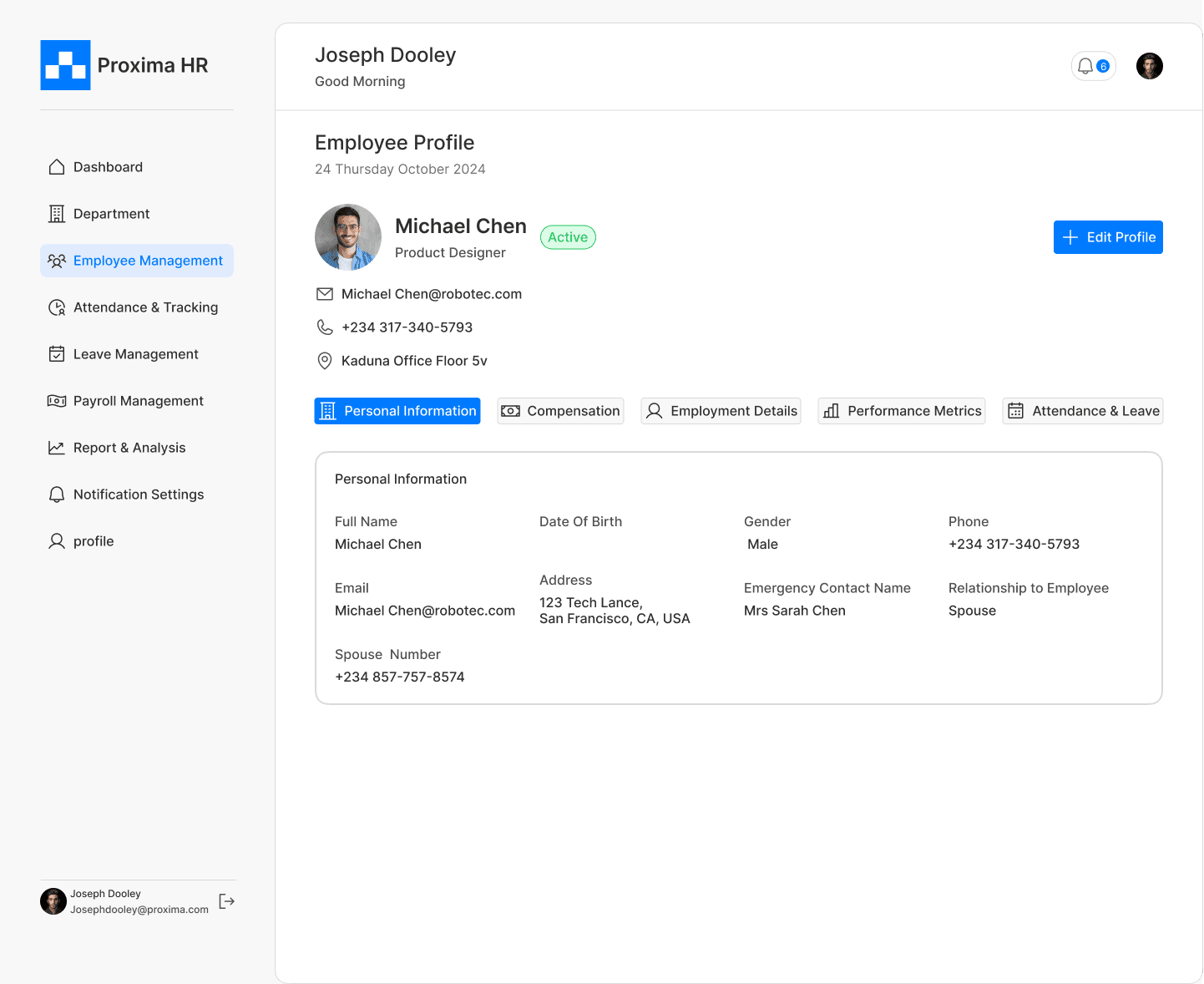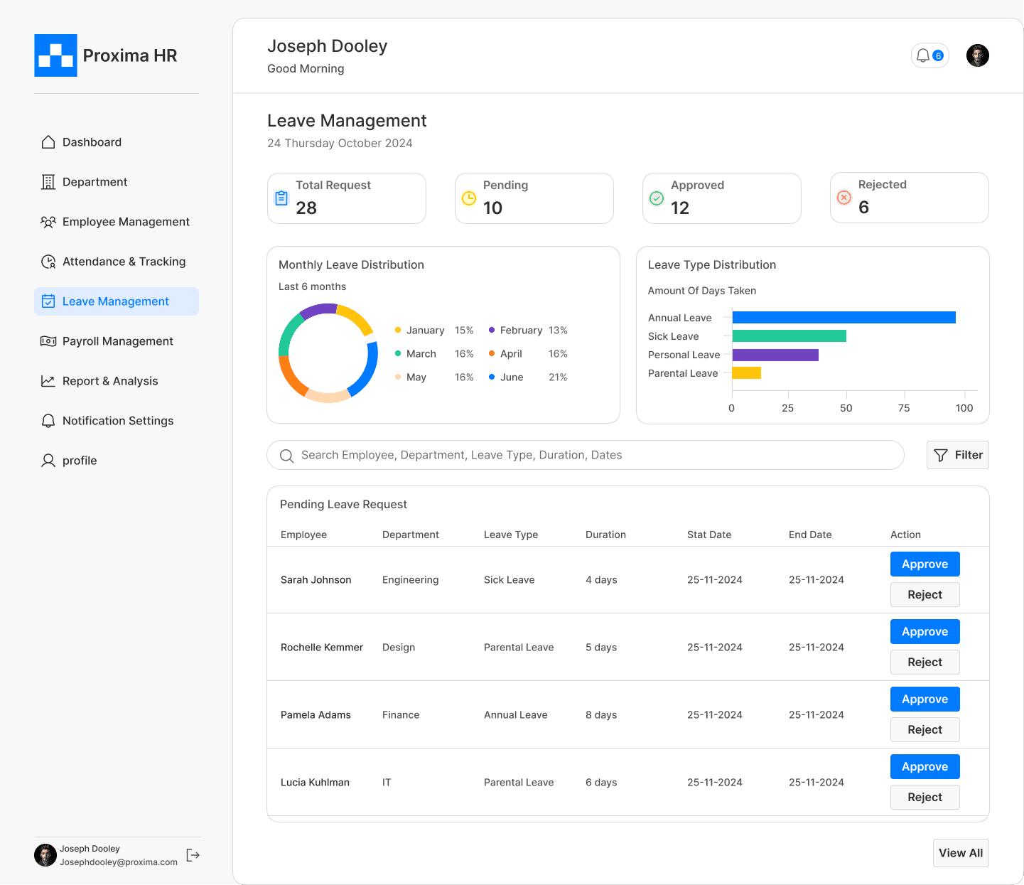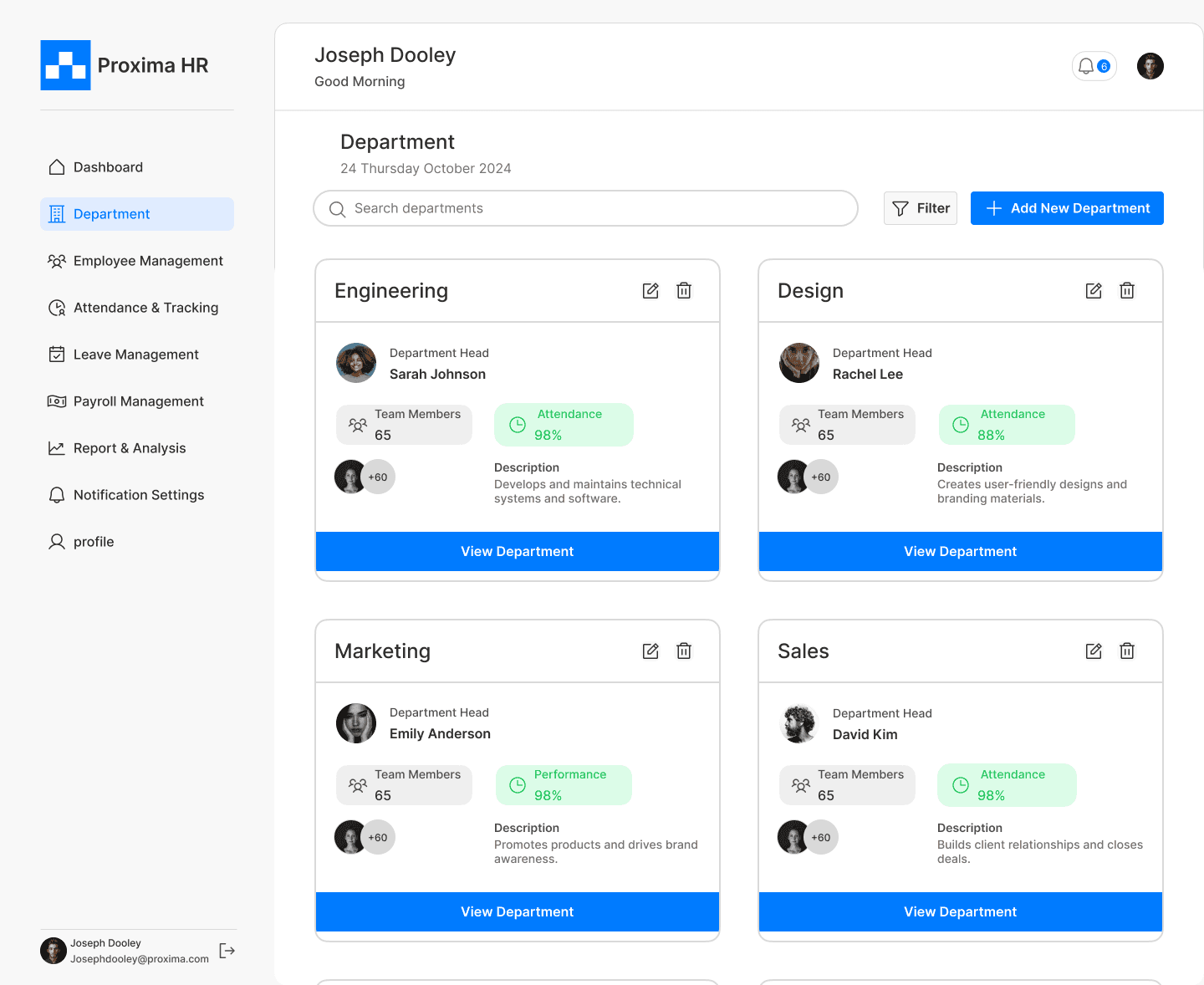 ProximaHR is an HR management system that brings employee data, attendance tracking, payroll, and task management into one simple and easy-to-use platform.